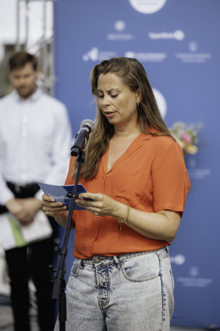 Anja Gotvasli (SpareBank 1 SMN) delte ut prisen. Foto: Oi! Trøndersk Mat og Drikke AS/Albertine L. Vestvik